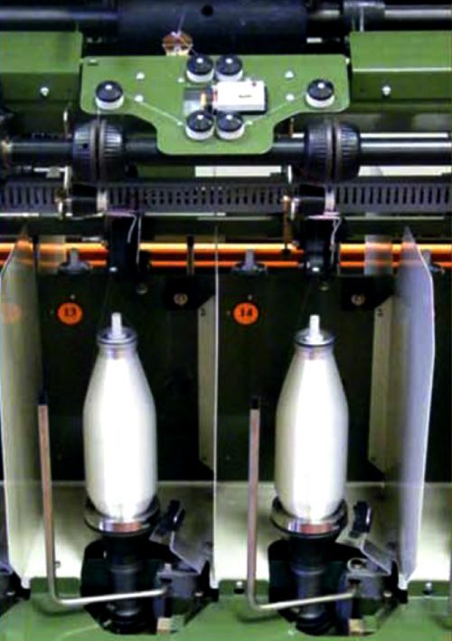 R364 CU1/DT 90: Machine pour la première phase de la preparation du fil à broderie.Les bouts sont tordus individuellement et assemblés parallelement sur une bobine à joues de 1.200 grammes.Les broches modèle DT90 peuvent traiter cops de longueur de 260mm ou bobines de longueur de 210mm, poids net du fil jusqu’à 600grammes pour les deux paquets d’alimentation.