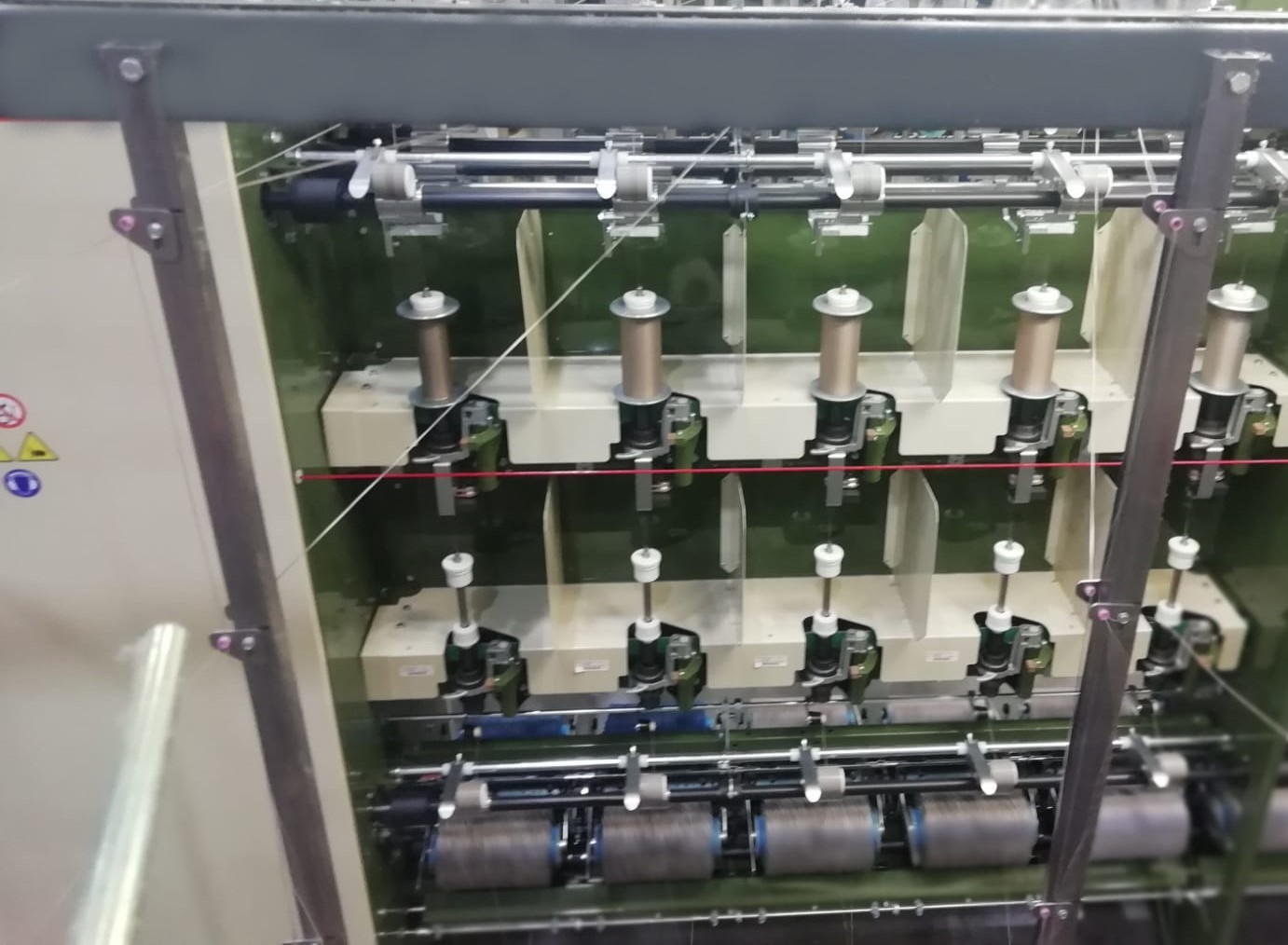 Moulin à broche perforée Fantaisie, pour single ou double reilure, pour la production de fils fantaisie à partir de fils continues artificiels ou synthétiques. Comme fils d’effet on peuvent utiliser fils courtes de fibres naturelles aussi, tandis que le fil dereilure est toujours de nature synthétique ou artificielle à fibre continue. On peuvent obtenir fils differents, comme: ondè, frisè, bouclè, botonné, flamé. Moteur broches contrôlé avec onduleur et motuers « brushless » (sans brosse) pour âme, effets et recéption. Système informatisé pour le contrôle de processus du travaill, avec la possibilité de mémoriser jusqu’a 150 recettes. Contrairement à la machine à single étage R 375 N, sur la machine à double reilure R 376 N: